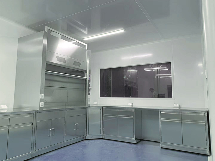 4.活動背板:柜體背面為設備夾層,柜子后部有可移動檔板,用于隱藏從地面預留或天花板引出功能柱到實驗臺面的水、電、氣管路,可在不用任何工具的情況下進入維修通道。