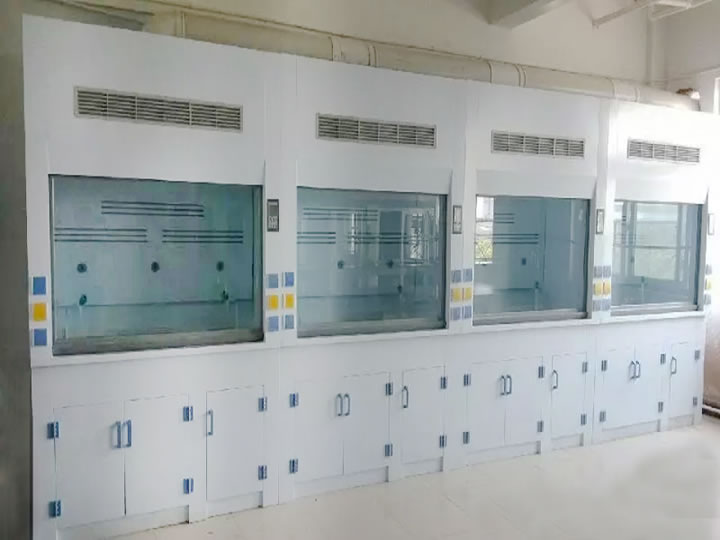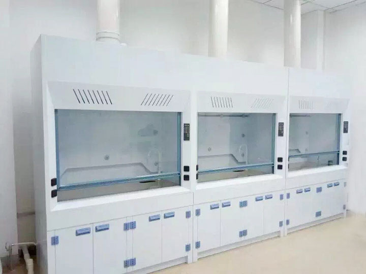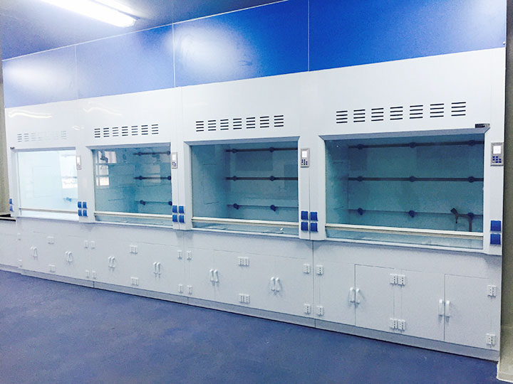 1、上部柜體:排氣柜采用頂罩式抽氣設計,設計有1個∮250mm排風口。導流板采用同質(zhì)PP材料制作,耐酸堿性能好。安裝尺寸科學合理,無氣流死角,獲取好的廢氣捕捉性能。